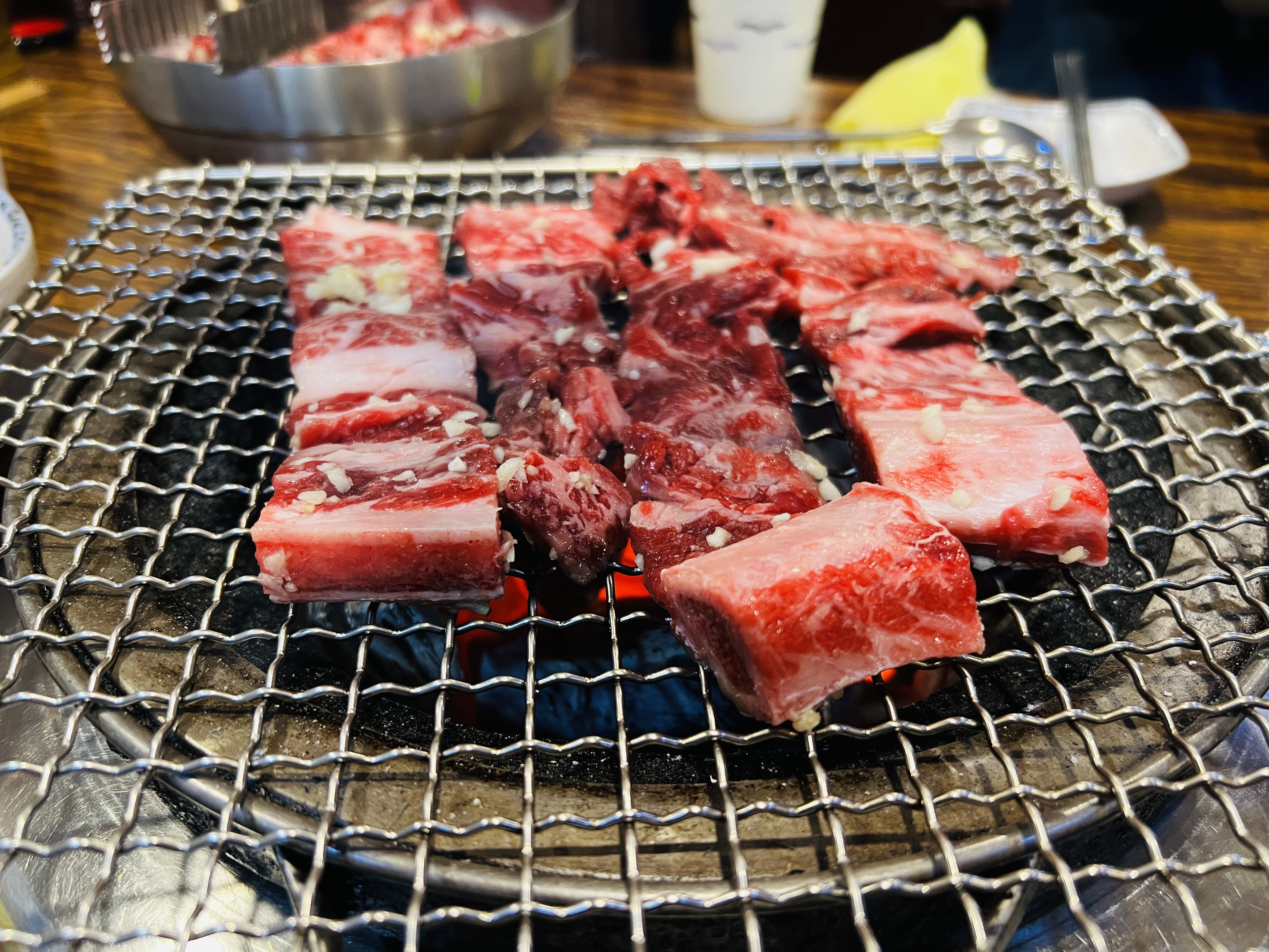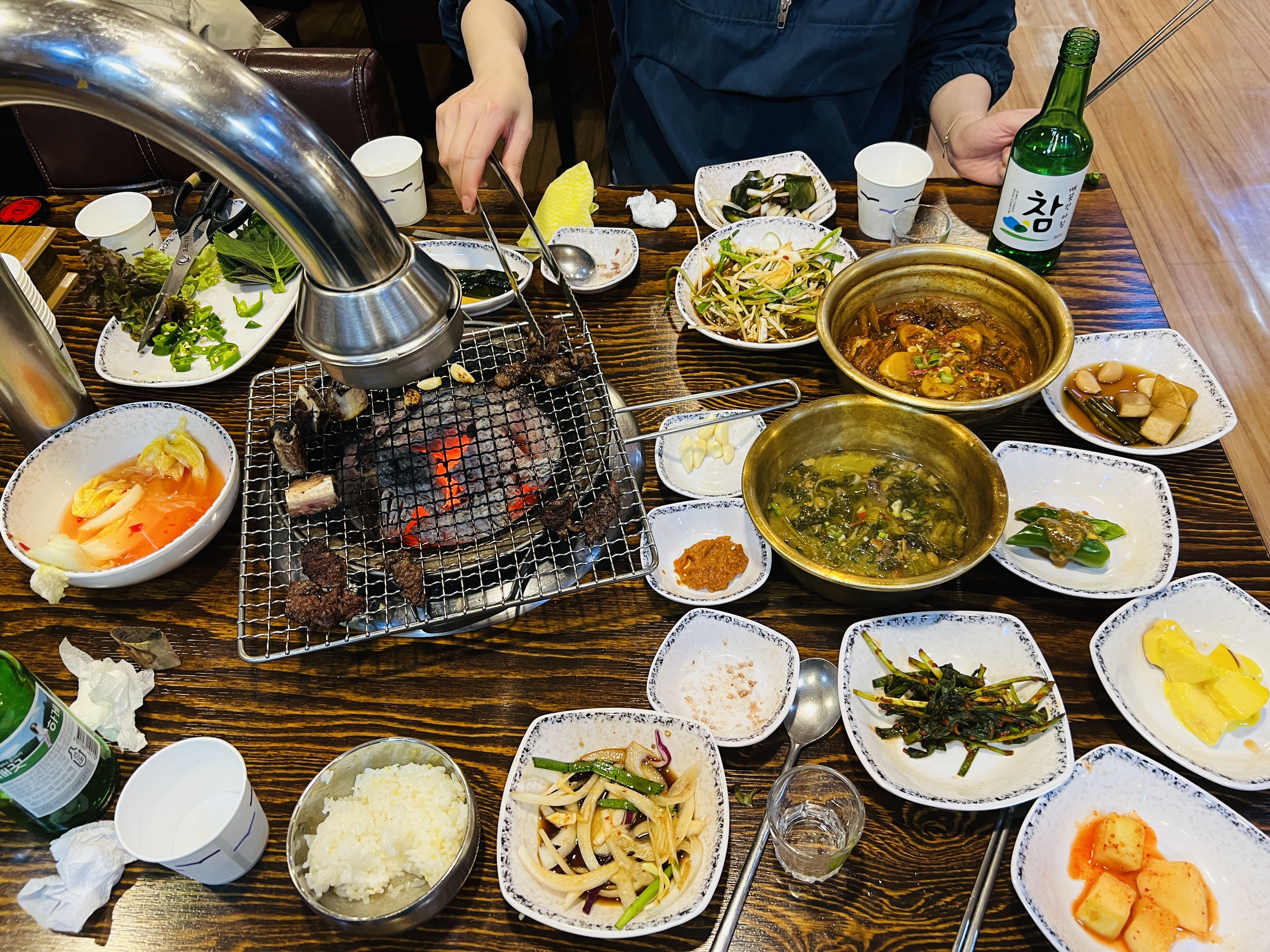바로 숯불이 들어왔고, 우리는 고기를 굽는데 전념했다.